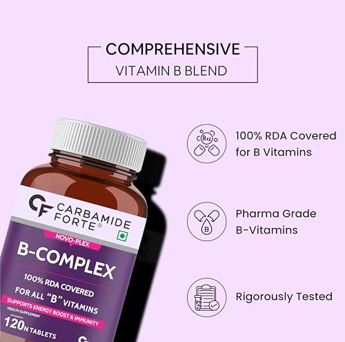 Carbamide Forte Vitamin B-Complex Tablets – 100% RDA for B Vitamins with B1, B2, B3, B5, B6, B9 & Vitamin B12 | Vitamin B Complex Supplements for Women & Men – 120 Vegetarian…
